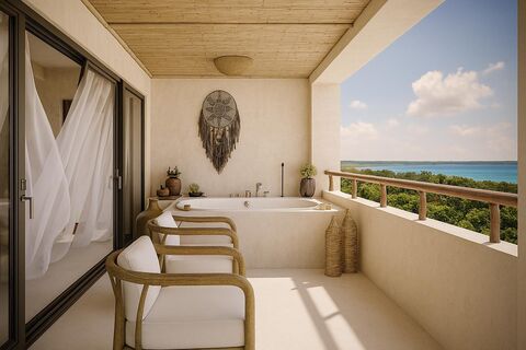 Discover an extraordinary opportunity to own a magnificent 1-bedroom, 1-bathroom residence, offering an expansive 267.20 square meters (approximately 2,875 square feet) of meticulously designed living space just moments from the world-famous Laguna de Bacalar. This exceptional property has been crafted to create an immediate emotional connection, featuring an intelligent layout that seamlessly blends indoor and outdoor living while maximizing the breathtaking views of the surrounding natural paradise. The spacious bedroom suite serves as a private sanctuary, designed for ultimate relaxation and comfort, ensuring this residence represents not just a home but a strategically sound investment designed for both luxurious personal enjoyment and exceptional rental potential in one of Mexico's most emerging luxury markets.