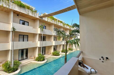 We present an exceptional opportunity to own a contemporary modern loft that redefines the concept of jungle living in Tulum. This intelligently designed property offers a built area of 50 square meters, equivalent to 538 square feet, creating a space that, while efficient, feels surprisingly spacious and bright thanks to its open-plan design. The layout perfectly integrates a comfortable sleeping area, a cozy social space, and a functional kitchen, culminating in a full, modernly finished bathroom. It is the perfect refuge for those seeking a minimalist lifestyle without sacrificing comfort or elegance.