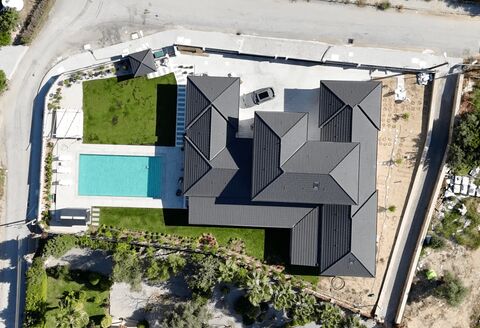 The villa offers exceptional security and cutting-edge home automation. The entire perimeter is monitored 24/7 by 12 Hikvision cameras equipped with facial recognition technology, integrated with a Hikvision Pro Series alarm system. Access is controlled by premium German HÖRMANN doors, including a high-security, thermally insulated main entrance door with an online management system. All essential systems—including lighting, the heat pump, pool motor, and room thermostats—can be managed remotely via the Italian Bitichino NETATMO and Nuki lock automation systems, providing full control and monitoring whether the owner is home or abroad. The functional layout also includes essential spaces such as an air-conditioned, closed car parking area for two vehicles (with open parking for 4-6 more), a large 104m2 veranda, and multiple expansive attic storage areas, ensuring every functional need is met with absolute luxury.