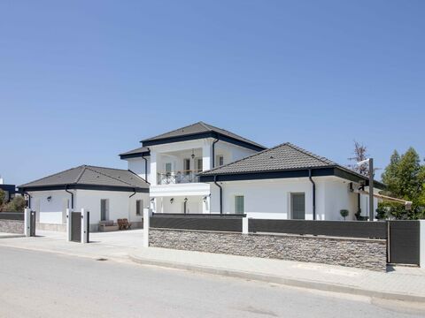This magnificent, luxury four-bedroom villa, situated between the sought-after locations of Ozanköy and Çatalköy in Kyrenia, represents the pinnacle of Mediterranean living. The residence features a striking design crafted by a renowned architectural firm celebrated for its work on five-star luxury hotels. This expertise is evident throughout the property, which seamlessly combines grandeur with warmth, creating a relaxed yet sophisticated atmosphere reminiscent of a high-end boutique hotel—perfect for a comfortable, stylish, and long-term stay. The total area of the land is a generous 1,730 m2, with an impressive 744.60 m2 of net usable area inside the house, all constructed with a Florida architectural design tailored for luxurious living in a Mediterranean climate.