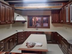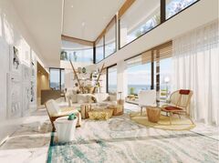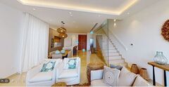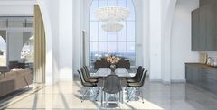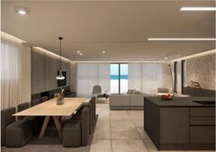 The living spaces are finished to an exquisite standard, reflecting a commitment to luxury and bespoke design. All four bedrooms function as elegant suites, each featuring its own en-suite bathroom and furnished with custom-made furniture from high-quality luxury brands like Fatih Kral Mobilya. The flooring mixes oak colour rustic plank laminated parquet in the bedrooms with elegant Marble in the main floor corridor, kitchen, and living room. Walls are finished with lacquered wood veneer and satin paint, while the living room features stunning wooden oak panelling with hidden lighting in the ceilings. The highly functional kitchen is equipped with top-tier appliances from Miele and Liebherr, complemented by Neolith porcelain surfaces. The two separate living spaces (Living Room: 43.78m2 and Kitchen/Dining: 31.54m2) can be separated by a beautiful door, offering versatile entertaining options.