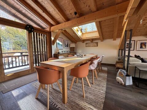 This is an extraordinary opportunity to acquire a stunning, architecturally modern chalet that perfectly marries central convenience with absolute tranquility in the heart of Samoëns, one of the French Alps’ most beautiful and historically protected villages. The chalet is strategically located within a highly desirable, quiet cul-de-sac, offering the deep sense of privacy and peace essential for an alpine retreat. Yet, this seclusion comes without compromise on accessibility. The property is situated within easy walking distance to the village center and all its renowned amenities—from the historic medieval place and its shops to gourmet restaurants and the main lift access to the vast Grand Massif ski domain. This balance of central location and absolute privacy is exceedingly rare, making this chalet not just a home, but a strategic alpine investment. The property adheres to the strict architectural standards of Samoëns, blending traditional stone and timber, while the interior reveals a modern design spanning three magnificent floors. It is built to the highest specifications, offering a vast and versatile 350+ square meters of meticulously planned living space, ready to cater to large groups, rental clients, or multi-generational living immediately.