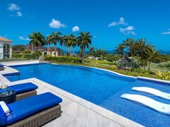 Two-Tier Infinity Pool with Sunset Views At the heart of this retreat lies a breathtaking two-tier infinity pool, cascading gently across levels and framed by a spacious sun-drenched deck. Each tier invites you to unwind—whether you’re floating in the upper pool with a cocktail in hand or lounging at the edge of the middle tier pool as the sky ignites in hues of orange and gold.