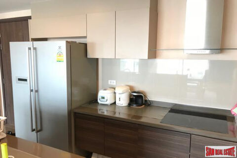 A furnished three bedroom, three bath condo in the Teal Sathorn-Taksin is being offered for sale. Located on the 26th floor there is a big balcony that runs the length of the apartment with spectacular views of the city.