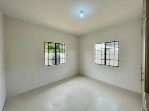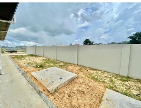 This modern bungalow-style home welcomes you with a large front area, perfect for creating a beautiful lawn or expanding the house to suit your needs. The expansive green space extends to the back of the property, offering ample room for outdoor activities and relaxation. A sheltered front veranda provides a welcoming space to relax and enjoy the tropical breeze, while a dedicated parking area to the right offers space for two vehicles. A paved path (skirting) surrounds the entire house, adding a touch of elegance and ensuring easy maintenance. A water tank at the back of the house, connected to the plumbing system, provides an extra water supply, complemented by a convenient yard pipe for outdoor use.
