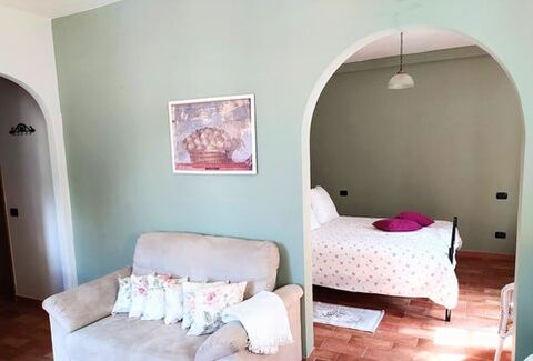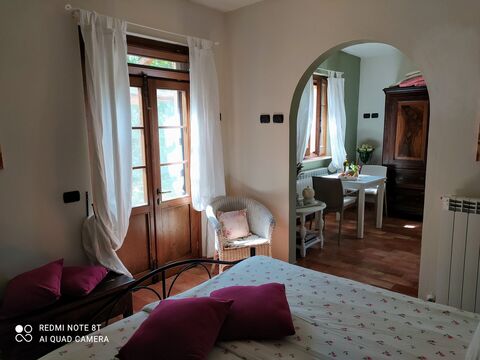 Raffaello: Located on the first floor, Raffaello offers breathtaking views of the surrounding hills and woods. This apartment features a spacious living room-kitchen, a comfortable bedroom, and a well-appointed bathroom. Guests can enjoy the serene ambiance of the surrounding gardens, including the orchard and olive grove.