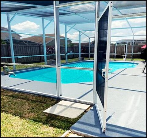 Outdoor Oasis: Enjoy the Florida sunshine in your private fenced yard. The screened 30-foot in-ground pool provides a refreshing escape for relaxation and entertainment.