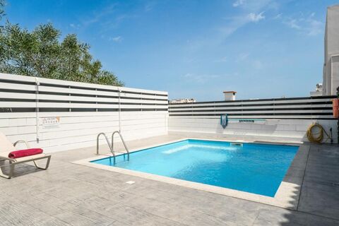 Step outside and embrace the true magic of this villa. A sparkling heated swimming pool beckons for refreshing dips on hot summer days. Gather with loved ones for poolside barbecues, creating lasting memories in this idyllic setting. For those seeking shade, a comfortable seating area at the rear of the property offers a haven for relaxation. Imagine enjoying al fresco meals under the starlit sky or simply soaking up the warmth of the Mediterranean sun.