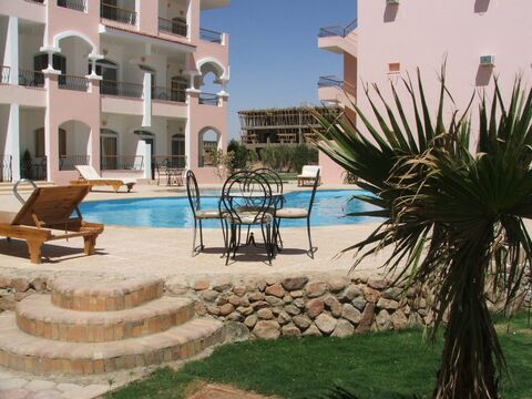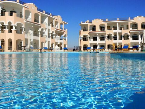 This ground-floor apartment boasts a prime location within a self-contained resort. Relax by one of the six sparkling swimming pools, all with captivating views. Enjoy easy access to a communal rooftop, ideal for stargazing or entertaining under the Egyptian night sky.