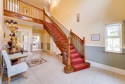 The house extends to approximately 3,000 square feet and consists of an impressive double height entrance hall with galleried landing and striking chandelier, kitchen/breakfast and dining room, three further reception rooms and ground floor double ensuite bedroom. The first floor comprises four double bedrooms with ensuite bathroom, jack and jill bathroom and main bathroom.