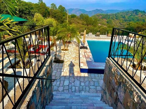 Situated just 2 kilometres off the main road (Tegucigalpa-San Lorenzo), this secluded haven boasts absolute privacy and tranquillity. Access is secured through a grand metal double gate entry, leading you down a gracefully paved stone driveway, setting the tone for the elegance that awaits.