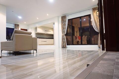 A thoughtfully designed and beautiful two storey villa, the property offers six en-suite bedrooms, two maids’ quarters, a large carport and off-road parking.