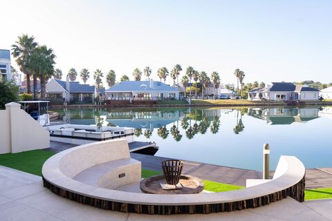 Walking through the aluminium stacker doors you are met with the view of the canals with a built in boma with fire place to entertain friends and family next to the water with private docking space for your boat should you desire.