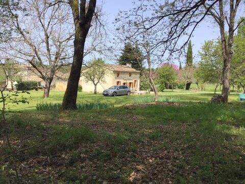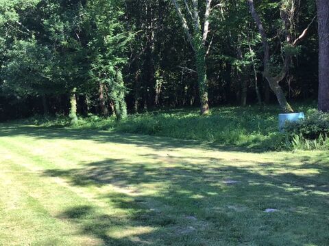 To the front is a paved terrace with pergola and herbaceous borders; to the left is a large grass area; to the right is a pathway with metal shed for gardening tools; and to the rear is the former barn, the same size as the house, ready for restoration, with stone, roof tiles and floor tiles ready. The parcels of grass and woodland are to the right from the front.