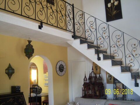 The house can be split into 2 units for letting or personal accommodation if required. The main unit has a large double-height lounge with marble floors and a staircase, wood burning stove for winter months, ground floor galley kitchen and ground-floor double bedroom. 2 first floor double bedrooms both en-suite , master has jacuzzi bath , fitted wardrobes, and french doors to a balcony at one side and to a terrace at the other side.