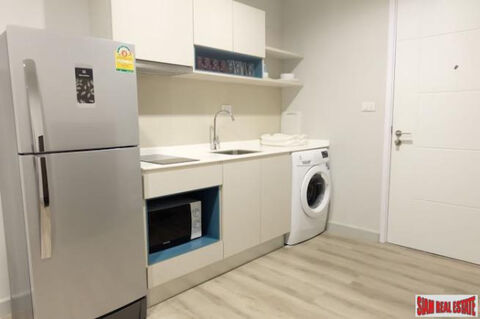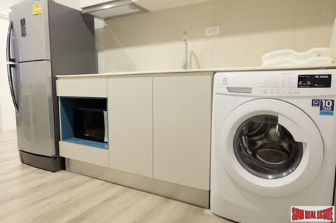 This is a two bedroom, two bath condo for sale in the Centric Sea. The unit is bright and sunny and comes with built in shelving, wardrobes and has light wood flooring and nice turquoise accent in the living area. The open living plan includes a living room with sofa and wall mounted flat screen TV, a dining table that seats four and a fully equipped western kitchen. The kitchen is efficient with a stovetop, microwave, large refrigerator and a washing machine. The apartment is on the 29th floor and there are excellent sea views from the balcony.