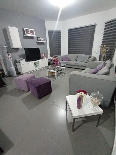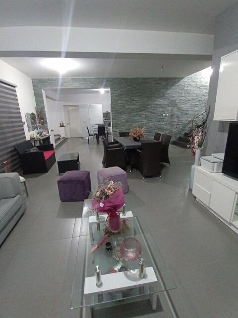 A house in the mountains in a village outside Nicosia. It has a yard, verandas, a garage, kitchen (2), toilet, dining room and living room. upstairs there are 3 bedrooms (one with a walk-in wardrobe and shower), 1 bathroom, laundry.