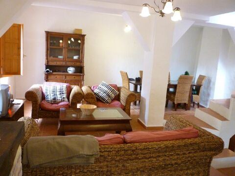 The entrance hall and living room also boast a chimenea each (wood burner). Windows are all shuttered. The original door in is situ but would require some expert work to retain. Heating in winter is usual from electric oil heaters, but there is ample room in the inner courtyard/cava to install alternatives. Or indeed for solar panels on the roof area.