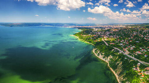 Varna Region is located in North-Eastern Bulgaria. It borders the regions of Dobrich, Shumen and Burgas as well as the Black Sea to the east. The region is generally hilly and along the river valleys of Kamchia and Provadiyska, it is plain. The seashore has wide stripes of sand towards which wooded mountain slopes run down in terraces. The coastal line is shaped by the bays of Varna, Kamchia and Sveti Yani as well as the promontories of Galata and Cherni (Black). The area is rich in ground and karst water. There are two firth lakes beside the sea – Varna and Beloslavsko, connected in 1923 by a navigable canal. There is mineral water rich in iodine near Varna and in the valley of Kamchia River.