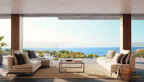 Luxury apartment for sale with unobstructed views over the sea and the residential area of Bendinat. This spacious property is located in the new Bendinat Panorama which is one of the most prestigious communities on the southwest coast of Majorca, a few steps from the Bendinat Beach. This south-facing property offers a 181 m2 constructed area divided over, 3 bedrooms, 3 bathrooms, a guest toilet, a bright living/dining area with an all-equipped modern open kitchen, and 183 m2 of covered and uncovered terraces.