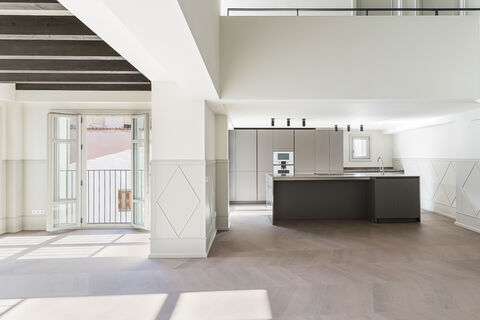 New luxury duplex penthouse apartment in a one of the oldest buildings of the island's capital, Palma de Majorca. The building itself is set in the historic and most beautiful part of the city and is being converted to a beautifully renovated living complex of 12 highly personalised apartments and an amazing open patio with a pool and lounge area at the heart of it all.