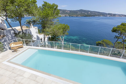 This frontline villa is located in a quiet residential area in Torrenova with breathtaking views of the whole of Palma bay. There is direct sea access from the property and a natural platform where you can go swimming from.