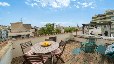 Authentic 2-bedroom apartment with private roof terrace for sale in Santa Catalina, one of Palma's most vibrant and sought-after neighborhoods. This beautiful apartment offers 74 m2 of character-filled living space, just moments from the heart of Santa Catalina. Renovated in 2022, the property has retained much of its original charm, including baldosas hidraulicas (traditional cement tiles) and original wooden doors that speak to its historic soul. The layout includes a bright living area, a dining area, an equipped kitchen, 2 comfortable bedrooms, a tastefully updated bathroom, 2 balconies.