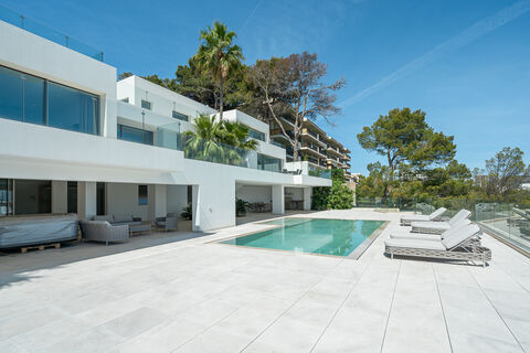 Newly built villa facing south, with direct sea access and stunning sea views in Cala Vinyes, Mallorca. Built in 2022, with 617 sqm of living space on a 1290 sqm land plot. The 3-story villa features 5 bedrooms, 7 bathrooms, terrace, pool, fitted wardrobes, air conditioning, and adapted outdoor access for people with reduced mobility. Includes parking and storeroom. Just minutes from beautiful coves and Poniente golf, and 20 minutes from Palma.