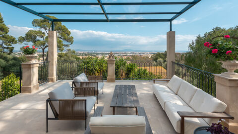 This magnificent property is enthroned on a sunny plot in Son Roca, Palma de Mallorca and offers sensational views over the city to the sea due to its elevated position. The luxury villa was originally built in the early 1900s and has recently been lovingly and stylishly renovated, combining timeless elegance with contemporary sophistication. The seamless fusion of classic charm and high-quality modern features results in a truly exceptional family residence.
