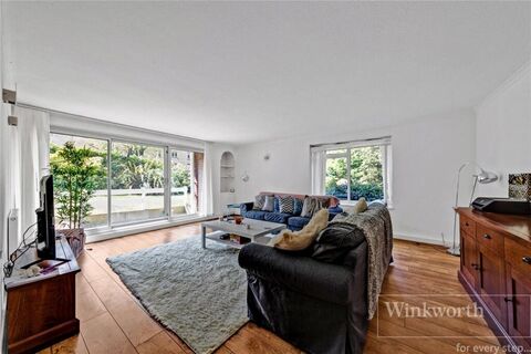 Beautifully presented three double bedroom, ground floor apartment. Featuring 25ft by 19ft living room with direct access to private south facing terrace, two bath/shower rooms, communal gardens. Share of Freehold.