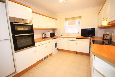 This sensibly priced chain free two double bedroom apartment is situated on the first floor of this popular block that is well located for railway stations and has the convenience of a lift service to all floors. The 20'6" x 11'6" living room has a good size balcony and along with both bedrooms has a lovely south facing aspect over the communal gardens. The kitchen has a range of fitted units with built in stainless steel double oven and integrated dishwasher, the washing machine and fridge/freezer will also remain, both bedrooms have built-in wardrobes, the main bedroom also has an en-suite bathroom. There is a separate shower, we recommend a viewing.