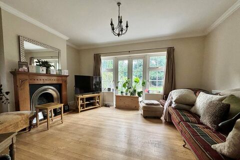 4.87m max x 4.33m (16'0 x 14'2) includes handsome fireplace with living flame gas fire, two radiators, wood strip flooring, porthole window to porch, double glazed windows and doors to garden
