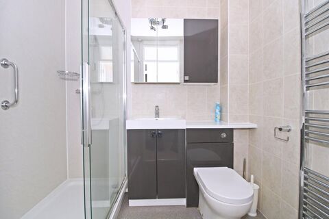 2.70m max x 2.58m max (8'10 x 8'6) electric radiator, emergency pull cord, double glazed window to rear with views over gardens to Kelsey Park beyond