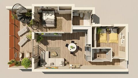 The apartments offer 3 bedrooms, 2 bathrooms, private terrace.