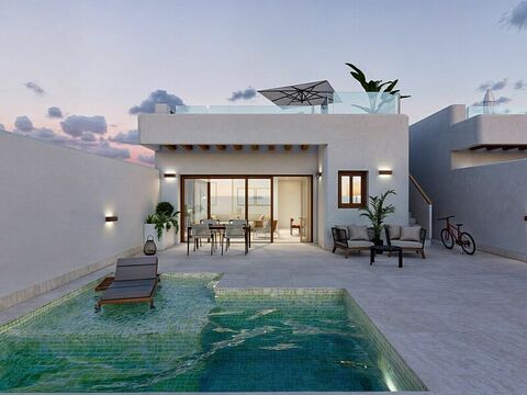 Get More Than a Home: A Furniture & Lighting Package is on Us! We are pleased to announce the launch of the final phase of development in Torre Pacheco, Murcia. This exclusive offering comprises 2 and 3 bedroom bungalow style villas, each featuring a private swimming pool, expansive open areas, and a solarium for year-round sun exposure. The development includes three villas with two bedrooms and two bathrooms, and one villa with three bedrooms and two bathrooms, all designed with a contemporary aesthetic and an open-plan configuration. Each villa is equipped with a fully integrated kitchen, a well-lit living and dining area, private on-site parking, and pre-installation for air conditioning, ensuring optimal comfort and convenience.