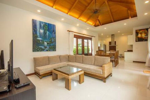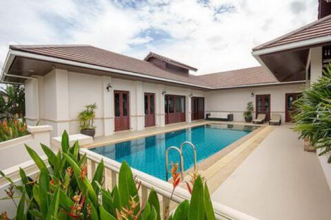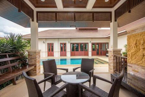 Lovely 3 bed pool villa on completed Development. The Villa features an open plan living, dining and modern kitchen, 3 good sized bedrooms with 2 bathrooms, laundry room and outside is a spacious covered terrace & Sala, pool 10 x 4, Double carport with storage and mature gardens. The House is sold fully furnished which includes :washing machine, dryer all household appliances, safe, built in robe in main bedroom, 4 air conditioners, European kitchen with microwave and oven, led lighting, colour change led lighting for garden and pool area with remote. high end Sony entertainment system 55" TV speakers and sub woofer 32" TV in main bedroom with dvd player Wifi modem, 4 camera CCTV system.