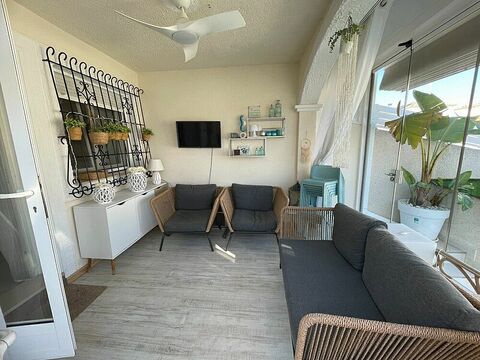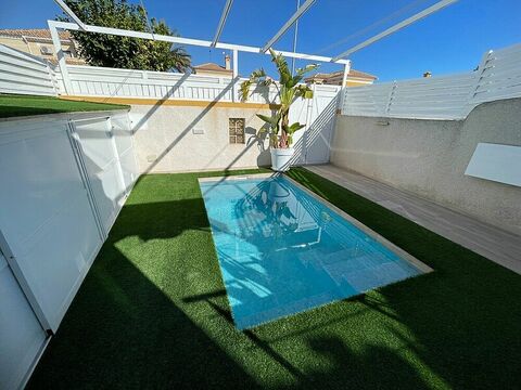 This luxury semi-detached townhouse in La Torre de la Horadada boasts a private pool. The exceptional property was renovated in 2023, offering a seamless blend of contemporary design and classic Mediterranean elegance. It features three bedrooms and two bathrooms, a private patio of 29 m2, and a spectacular terrace with a private pool. Its prime location offers the convenience of being within walking distance of the beach, local bars and restaurants, a sports centre, the marina, cycle paths, and healthcare facilities.