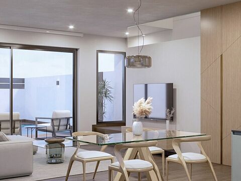 Designed with offering an outdoor quality of life with spacious and bright spaces.An interior layout that merges living room, dining room, and kitchen, accompanied by 3 bedrooms and 3 full bathrooms. Each villa has a garden with an independent pool and solarium.