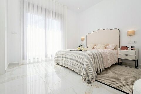 with 3 bedrooms + 3 bathrooms en suite, large plot from 351 m2, porch, parking space and private swimming pool 7x3 m. with beach area.