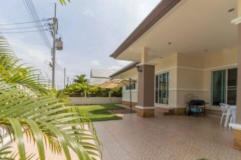 This villa is located on Hua Hin Soi 112 which is a fast crowing area with a lot of attractions such as Sam Phan Nam Floating Market, Electric Mango Restaurants, Banyan Golf Club, Vana Nava Water Park. The development is surrounded with mountains, very good infrastructure, 24h security, maintenance service, club house with fitness room, large swimming pool with Jacuzzi and childrena€™s pool.