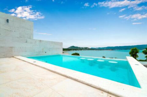 A floating staircase takes you up to the top floor with two ensuite bedrooms plus a spacious master with ensuite bathroom. The master bedroom opens onto a private balcony and enjoys stunning sea views. All bedrooms are stylishly furnished and decorated with the attention to detail and supreme comfort in mind.