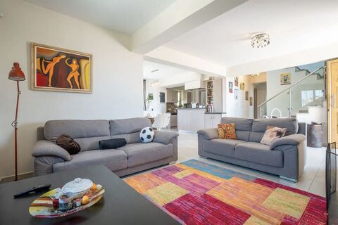 Set on a generous plot, with four spacious bedrooms and three contemporary bathrooms, including a master bedroom with en-suite. The villa is fully furnished and move-in ready, with bright open-plan living areas and large windows that flood the home with natural light while showcasing stunning panoramic views across the countryside and out to the sea.