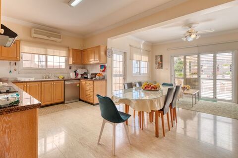 This well presented five bedroom detached villa is located in the quiet residential area of Faneromeni. Upon entering this property through to the exceptional spacious front reception, to your right you will find the large formal living and dining area. To the left you will find the ground floor bedroom which is currently being used as an office with an ensuite, and the large kitchen-dining area along with an informal living area. Going back to the reception and up the spiral marble staircase you come to a large landing, which gives access to the other four double bedrooms with fitted wardrobes with two of them boasting ensuite facilities. The balconies are accessible via different areas of the villa, and also has a covered pergola, perfect for outdoor dining or hosting family occasions. In the basement is a self contained two bedroom apartment, comprising of an open plan kitchen, dining and living area. Two double bedrooms and family bathroom.
