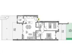 All our apartments feature a bright living room integrated with a modern open-plan kitchen, three spacious bedrooms with built-in wardrobes, and two bathrooms, one of them en suite with the master bedroom. Additionally, both the living room and the master bedroom have direct access to a spacious terrace.