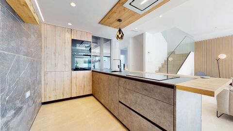 These villas built over 3 storeys, count with a wide and fully finished basement, on the ground floor we find the first bedroom and the first bathroom, a modern open-concept kitchen and the living area that opens to the pool through wonderful sliding doors.