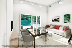 Villa with 3 bedrooms and 2 bathrooms, open plan kitchen with the lounge area, fitted wardrobes, solarium, private garden with off road parking space and space for a swimming pool.