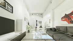 Spacious living room has large sliding doors to a terrace.