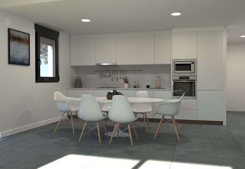 The fully fitted kitchen seamlessly integrates with the living and dining area, forming a versatile and inviting space ideal for everyday living as well as social gatherings. Large windows and sliding doors further enhance the connection between the indoors and the outdoors, letting the beauty of the Mediterranean landscape become part of the home.