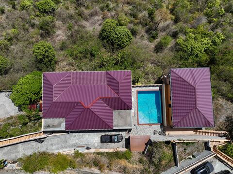 Enjoy the privacy and comfort of this 2-bedroom pool house with a spectacular view of the ocean. This 1,500 sq ft unit has its own cistern, electricity meters, driveway, parking, and entrance, making it perfect for guests or rentals. The unit features travertine tiles, concrete counters, porcelain tiles, and hickory accents. The bathroom has a corner Jacuzzi and the bedrooms are spacious and cozy. The highlight of the pool house is the 1,000 sq ft open patio with an outdoor sink and space for a full outdoor kitchen. The pool house also has a separate pump room that can be used for storage.