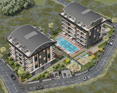 A new project offers 1- and 3-bedroom apartments and penthouses for sale. This modern-design complex will be commissioned with high-end fine finishing, an outdoor pool, a gym, and a spa centre with a sauna and a hammam. It is located 600m from the beach in Mahmutlar. This lively neighbourhood is 12km from the centre of Alanya and has a well-developed infrastructure. All the necessary facilities are within walking distance.